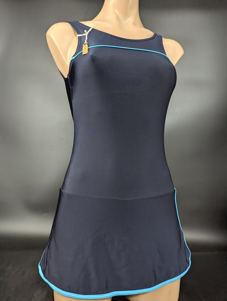 - 7867C 送料185円♪ アイルズ 光沢 ネイビー 水色パイピング ショートパンツ ミニスカート 競泳水着 140