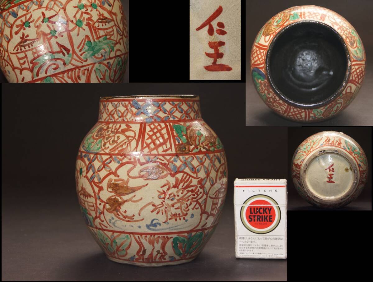 - 真贋保証■小橋川仁王 作■ 赤絵雲龍文壷 壷屋焼 吉祥文 飾壷 花瓶 花器 花生 琉球 沖縄民芸 民藝 検:新垣栄三郎 金城次郎