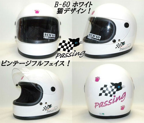 - B-60ネーム入れOK! ヴィンテージ猫ちゃんデザインヘルメット★ホワイト
