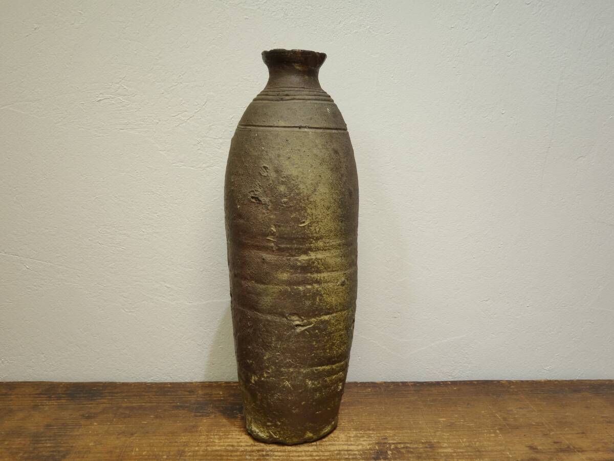 この焼締瓶はやや細身で胴には窯変が見られ、花入れとしては最適と思います。
