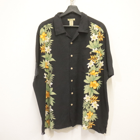 > M870 2000年代製 ISLANDER 半袖アロハシャツ■00s 表記XLサイズ 黒 ブラック レーヨン ボーダーパターン アメカジ ストリート 古着 古着卸