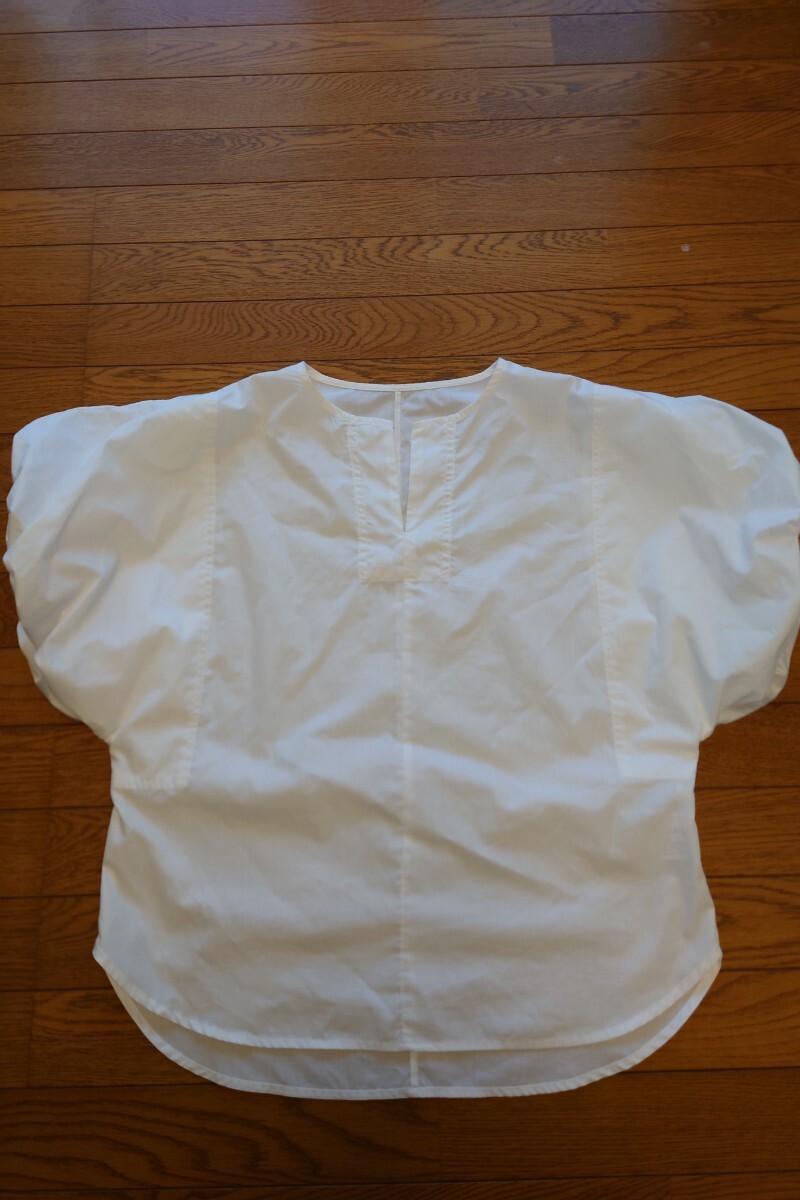 - ホワイト コットン Vネック バルーンスリーブシャツ L