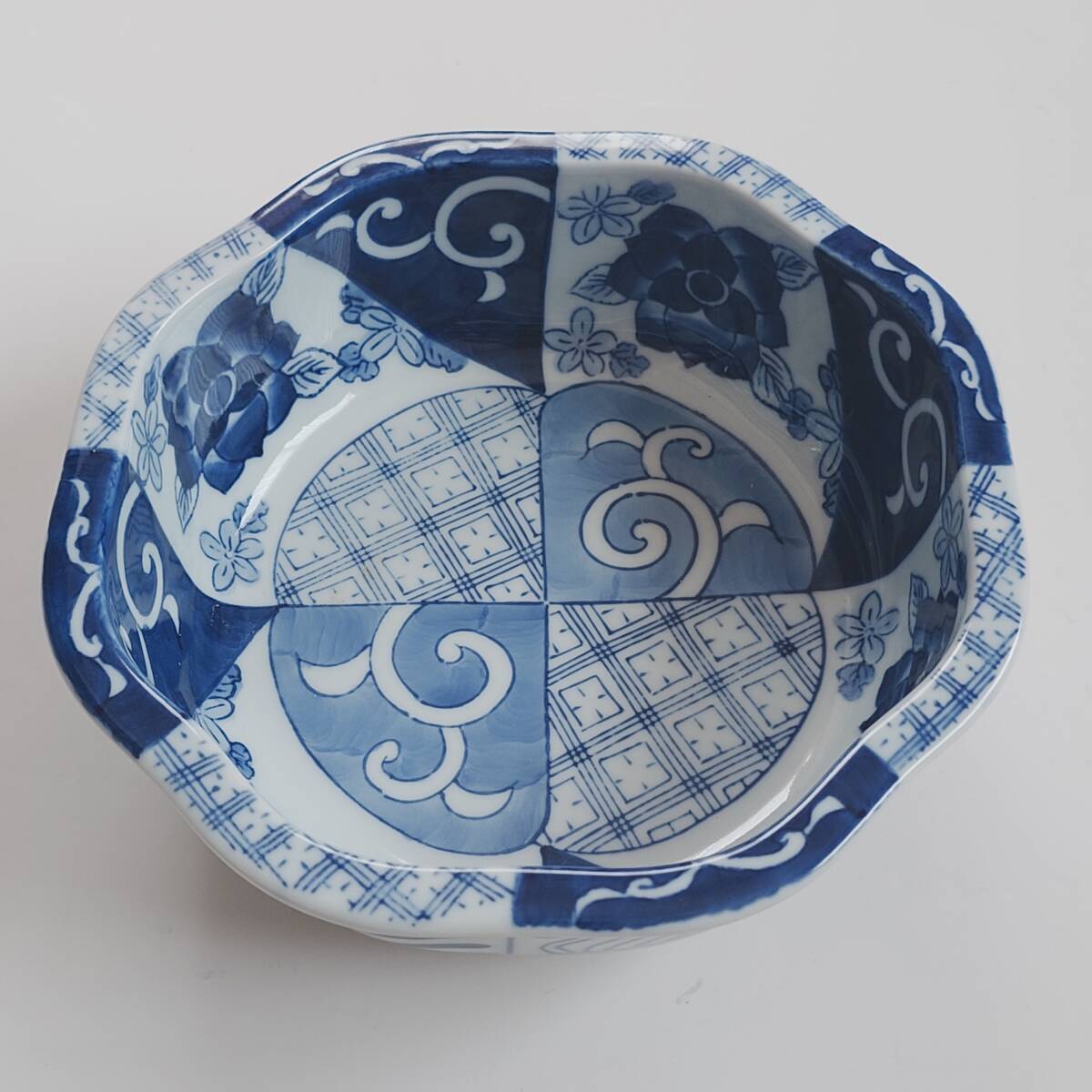 - 宅急便送料無料 有田焼 其泉窯 藍染花地紋 盛鉢 和食器 食器 未使用品 匿名配送