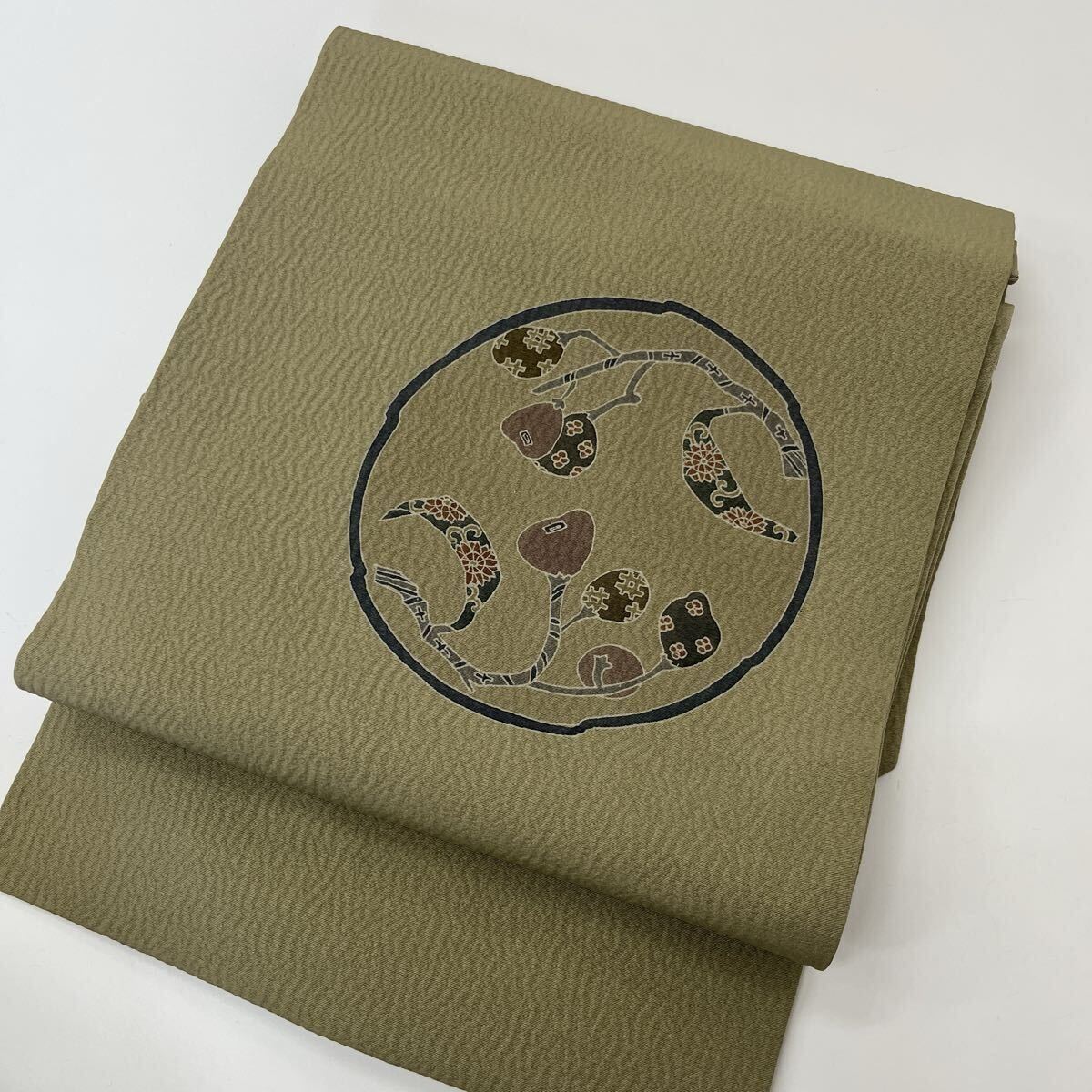 > 名古屋帯 ちりめん 上品な染め 九寸 正絹 W-4127