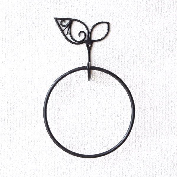- タオルハンガー タオル掛け タオルかけ 丸 おしゃれ タオルリング アイアンリングハンガー リーフ 送料無料(一部地域除く) kan1382