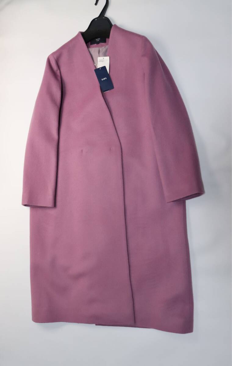 - 新品タグ付き SHIPS シップス ノーカラー チェスターコート モーヴピンク