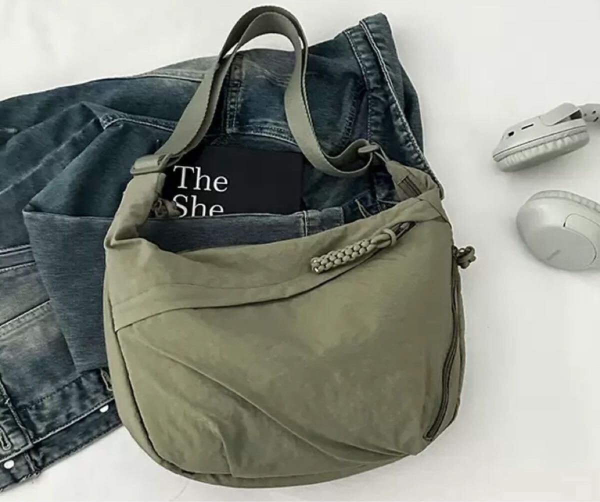 - 新品!大容量 カジュアルバッグ カーキ 仕切り付き シンプルバック