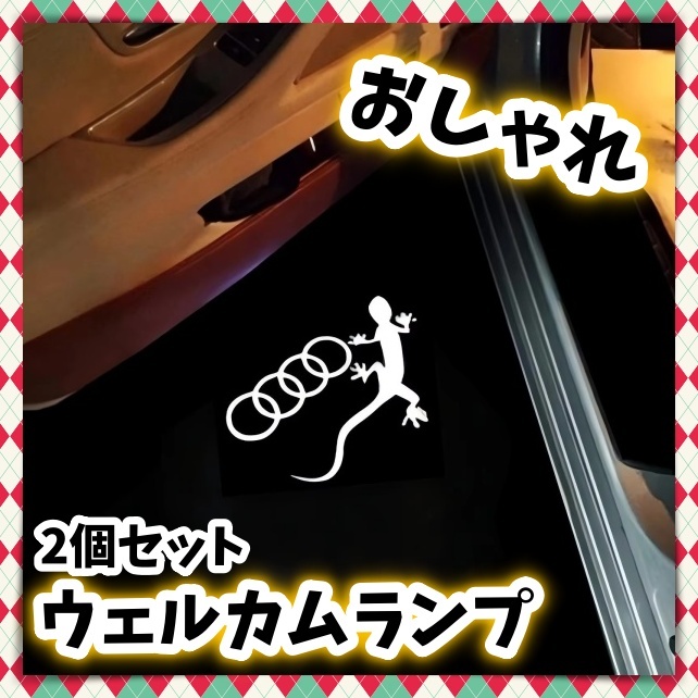 > Audi アウディ カーテシ ウェルカム ドアランプ 2個 ゲッコー 4リング とかげ やもり LED ロゴ投影プロジェクター S line スポーツ 電装