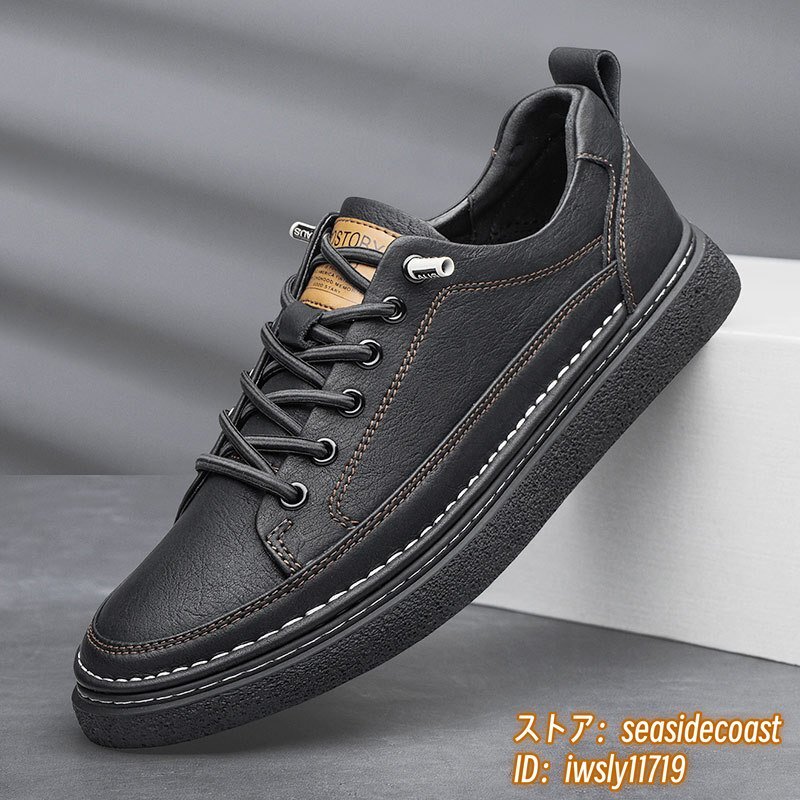 - 人気新作★スニーカー メンズ 本革 レザーシューズ 牛革 ローファー 運動靴 ドライビングシューズ 滑り止め 白靴 お洒落 快適 黒系 27.0cm