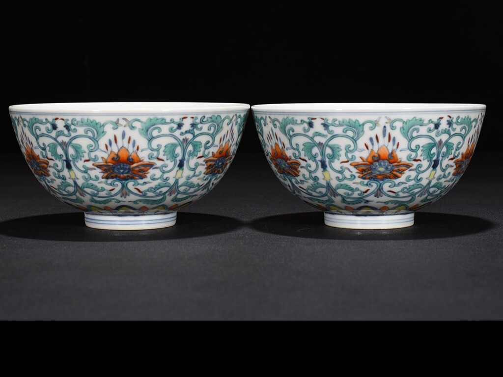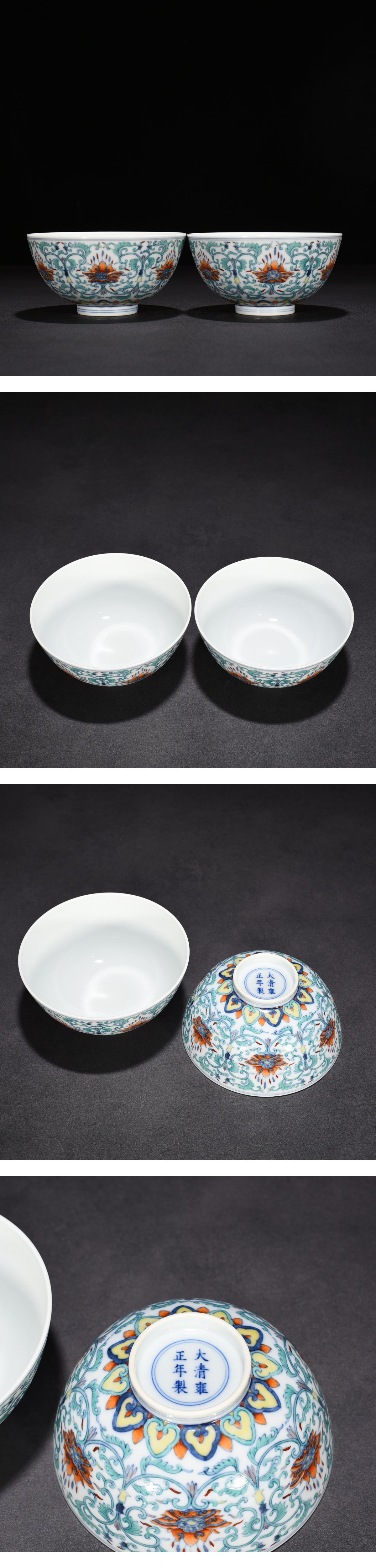 - YY183■清雍正年制・斗彩纏枝蓮紋碗一対 古玩 唐物■高さ7cm直径17cm■