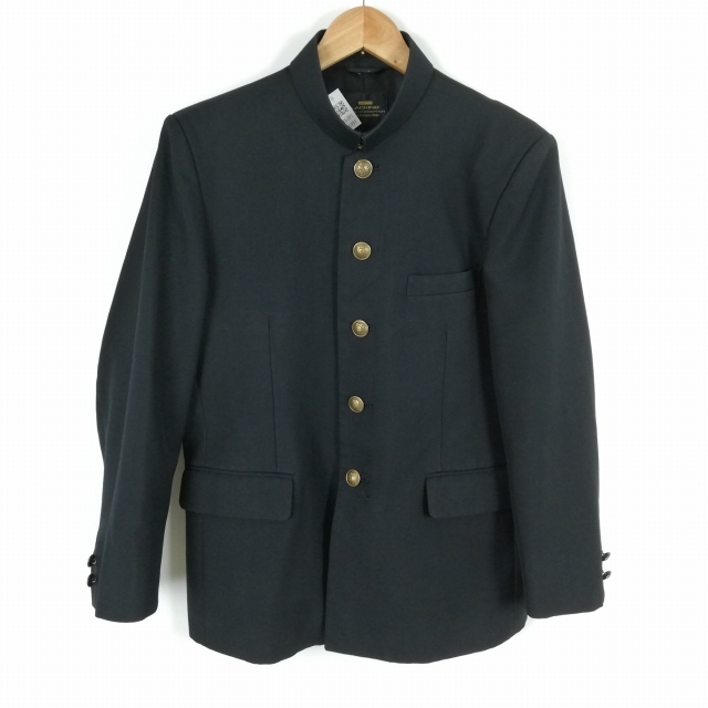 - 学生服 学ラン 165A 男子 上着 ウール混 標準型学生服 詰襟 サージ 黒 中古 ランクC a3 JJ6391