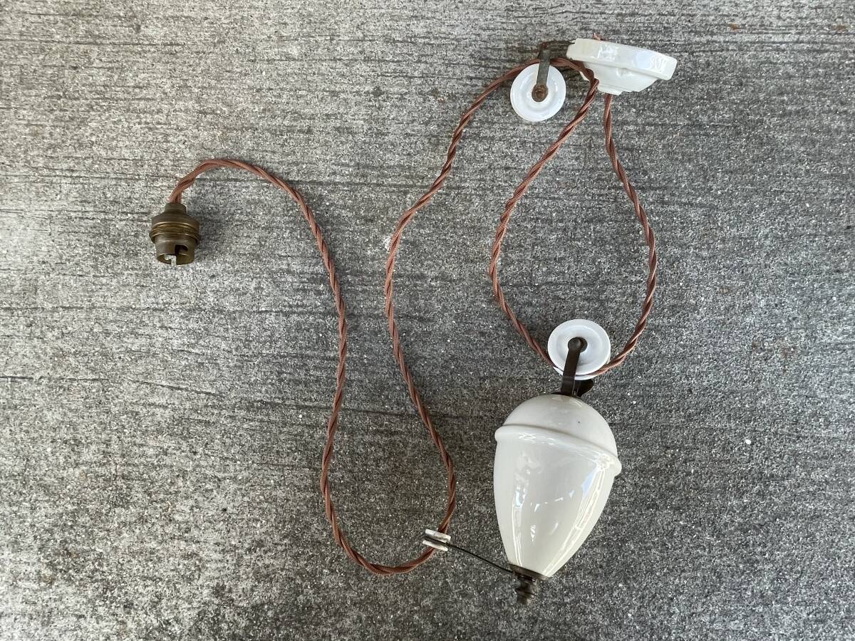 - 【merci】 C1-1. フランス 吊り下げ 滑車 ランプ 古道具 店舗什器 カフェ アンティーク 古民家 蚤の市 ミルクガラス シェード