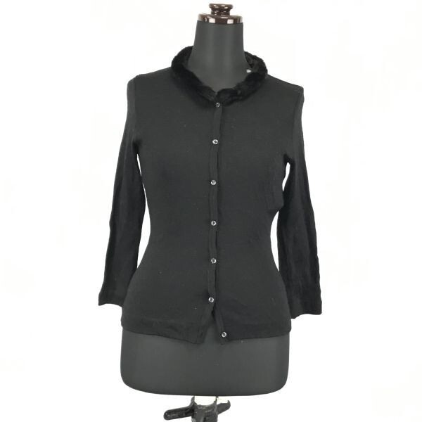 > ARTISAN/アルチザン★ミンクファー付/70%アルパカ/30%シルク/長袖カーディガン【レディースM/9/黒/ブラック】日本製/コムサ◆BG292
