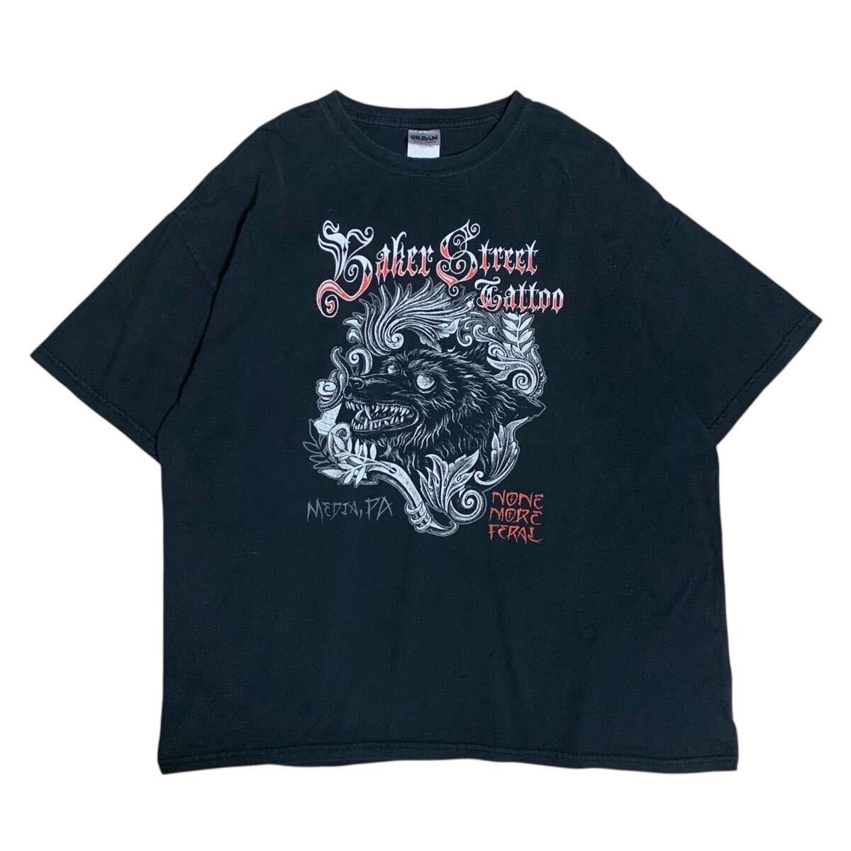 > 美フェード タトゥー ショップ Tシャツ TATTOO アート アニマル オールドイングリッシュ ブラック 黒 XL ビンテージ vintage 00s y2k