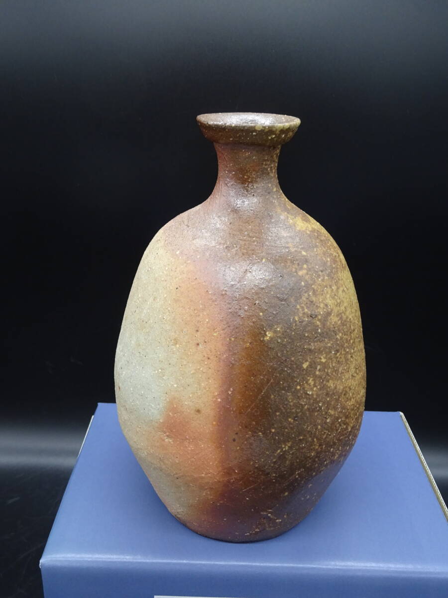 - 備前焼 異色人気実力作家 駒形九磨 ★備前緋窯変徳利 紙箱、陶歴付 酒器 茶碗 壺 茶道具