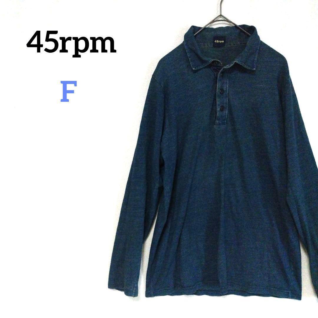 - 45rpm インディゴ長袖ポロ ロングスリーブ ノースマリンドライブ 藍色 綿 フォーティーファイブアールピーエム ブルー ハーフボタン