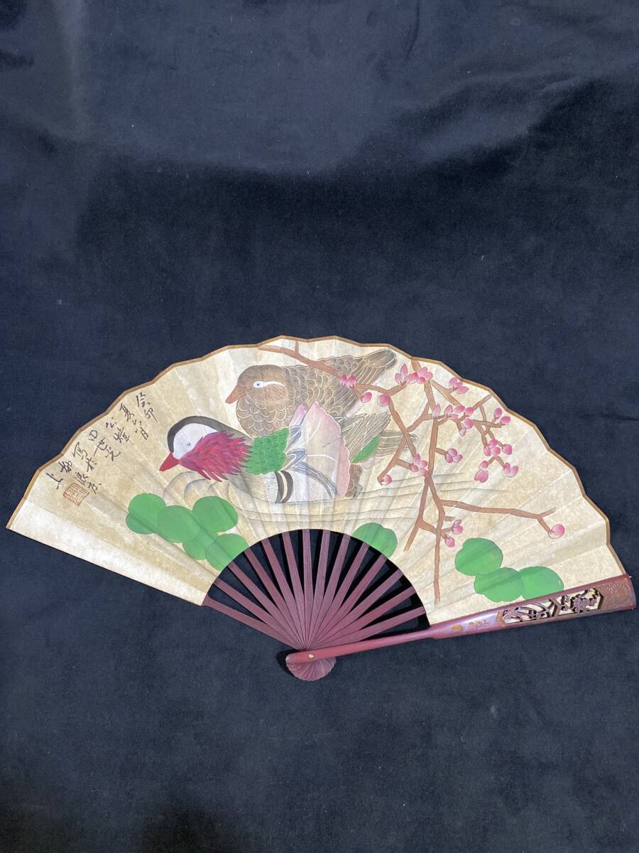 - 中国古画 手描 花鳥紋 扇子 巻物 宣紙 時代物 東洋彫刻 旧家蔵出し 唐物 中国古玩 古美術品