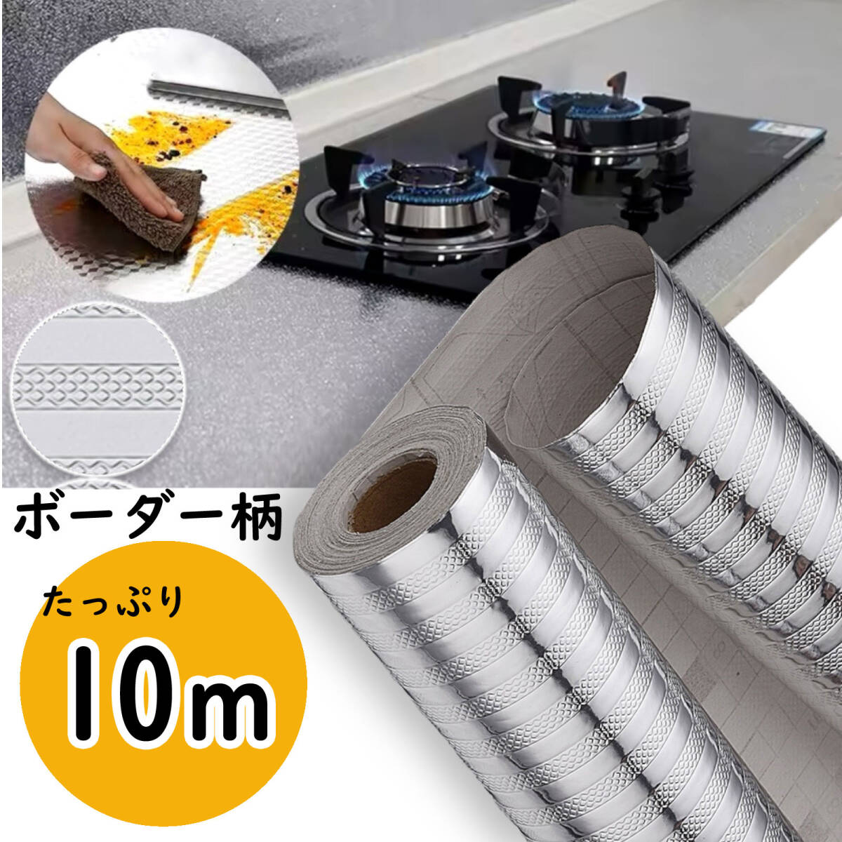 > アルミ シート 40cm×10m ボーダー柄 汚れ防止 壁紙シール ウォールステッカー リメイクシート のり付き 貼付 防水 防油 縞柄 シルバー