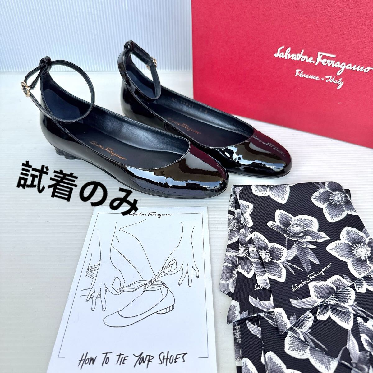 - Salvatore Ferragamo Vera サルヴァトーレフェラガモ リボンスカーフ ストラップ パンプス バレリーナ フラットシューズ 靴 レーディス 4D