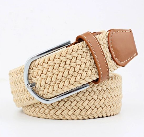 - 新品☆無段階ベルト ゴム編込ベルト 調整不要 ライトキャメル ワンタッチ楽々♪☆