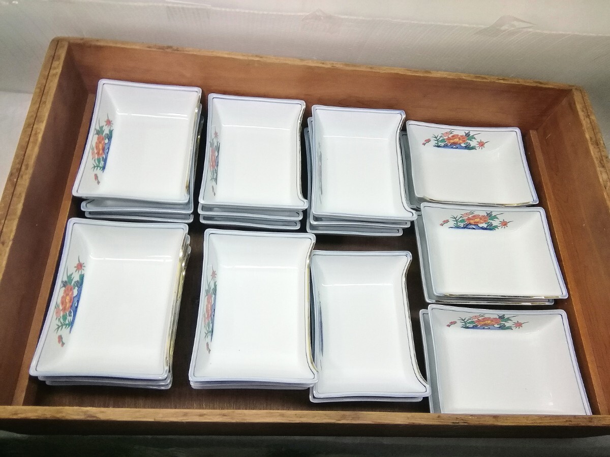 - 和食器 厨房食器 色絵 金縁 23鉢+木箱セット まとめて 角鉢/角型/多用鉢 /取り鉢/角皿 料亭食器/日本料理/ 割烹/旅館 食器 陶器 (23)