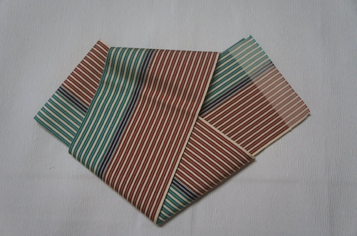 > 半巾帯正絹本筑博多織アイボリー色地縞模様未着用4寸単衣帯[N16463]