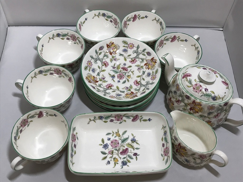 > 【1円スタート】 ミントン MINTON ハドンホール カップ&ソーサーx6、ティーポットx1、クリーマーx1、サンドウィッチプレートx1