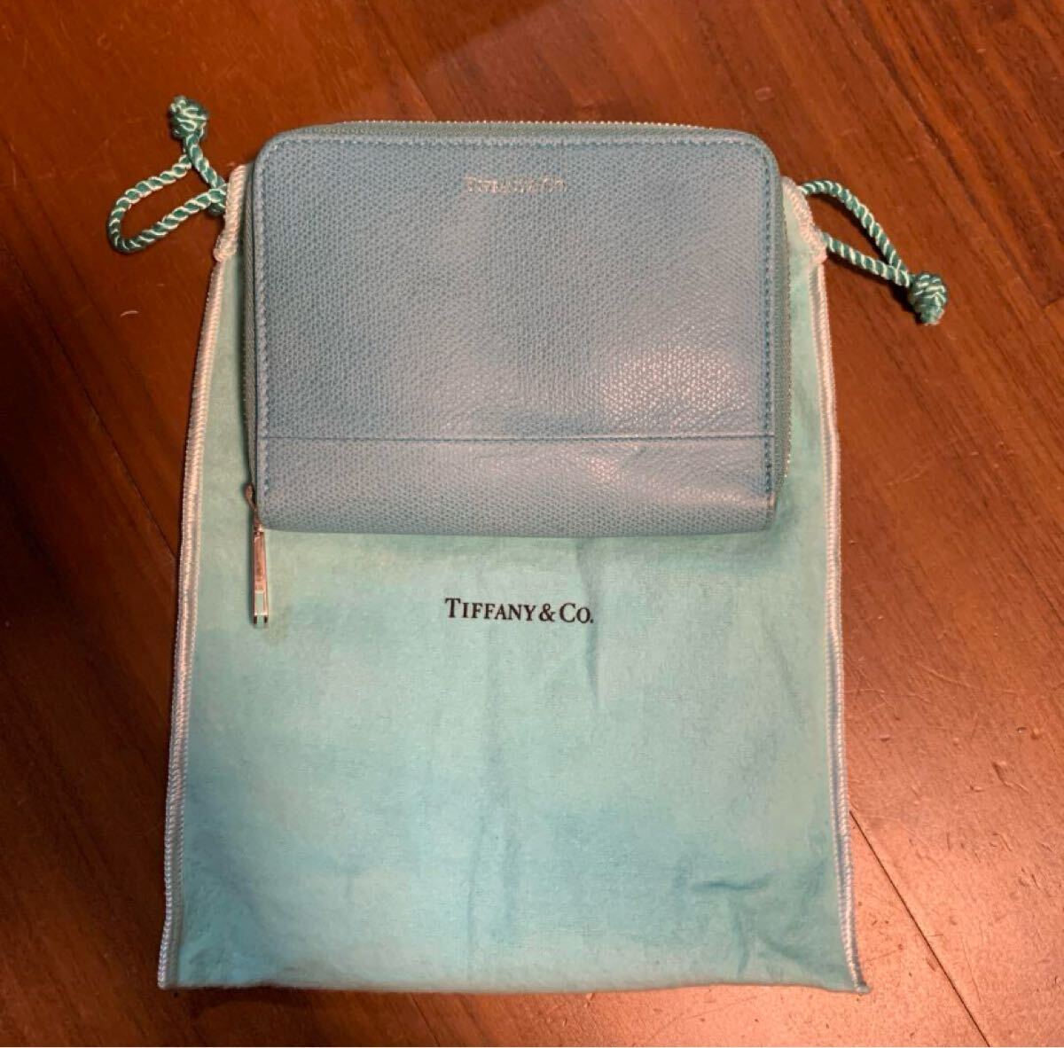 - ティファニーブルー レザー ラウンドファスナー コンパクト ウォレット