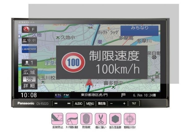 > 10-03-01【7インチ】Panasonicカーナビ ストラーダRSシリーズ 7型180mm CN-RS02D用 反射 指紋 キズ防止 抗菌 気泡ゼロ液晶保護フィルム