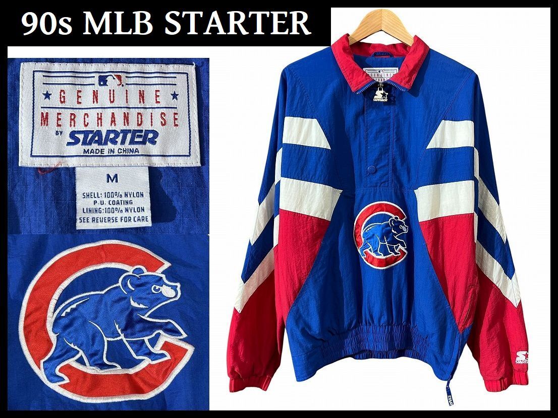 > 送無 希少 90s ビンテージ MLB STARTER スターター CHICAGO CUBS シカゴ カブス 刺繍 ロゴ ナイロン アノラック プルオーバー ジャケット M