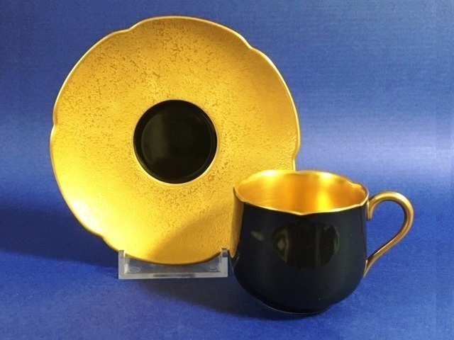 - ◎大倉陶園 黒蒔 金蝕 内側全金彩 カップとソーサー◎z21