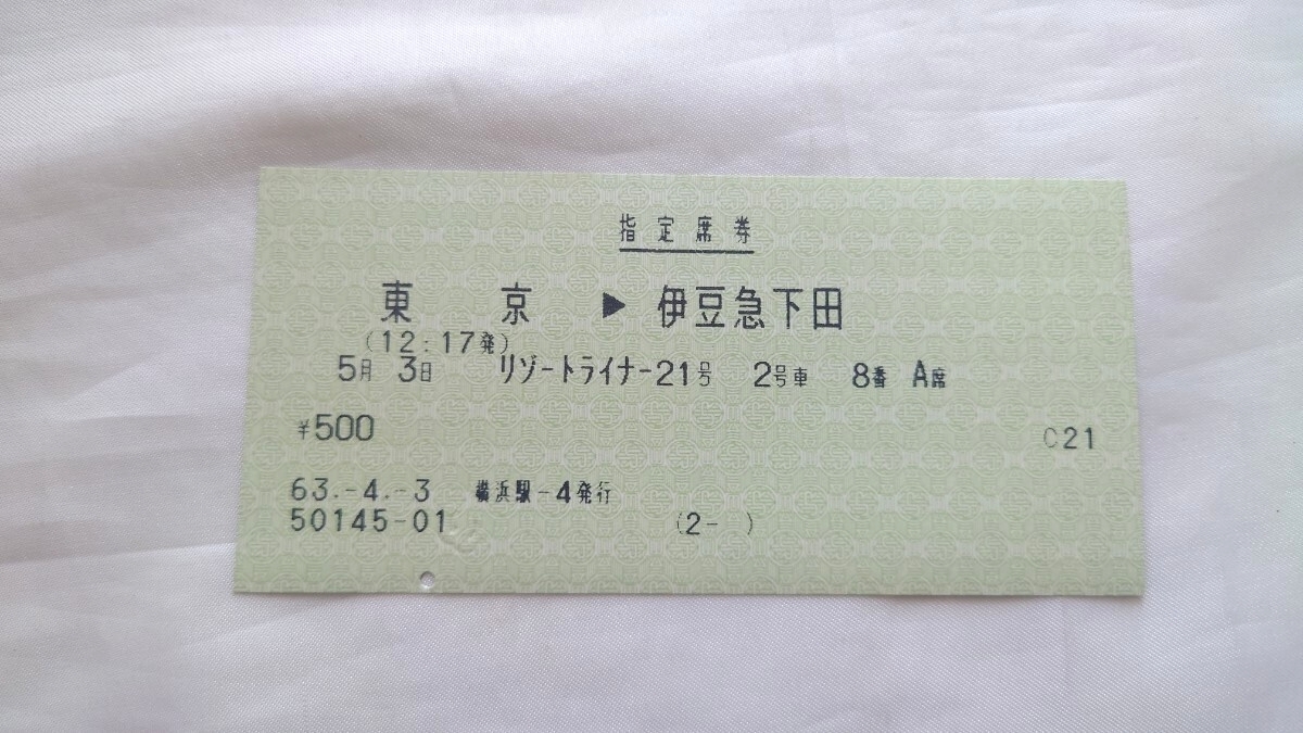 - ★JR★東京→伊豆急下田 リゾートライナー21号指定席券★マルス券