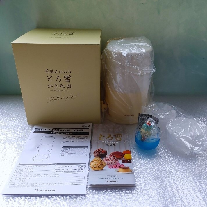 - 電動ふわふわとろ雪かき氷器ドウシシャ限定バターイエロー黄色 製氷カップ2個シャリシャリかき氷ソーダマスコットガチャ付き