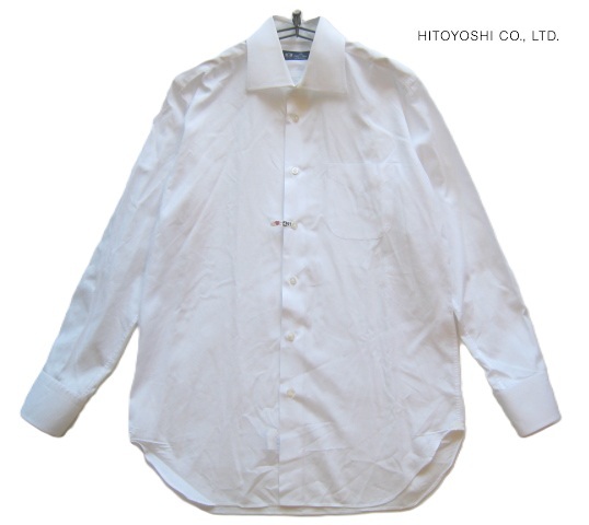 > 極上日本製!!ヒトヨシ HITOYOSHI 人吉*美シルエット 胸ポケット付き ホワイトドレスシャツ 40-82 実寸L 白 クールビズ スーツ