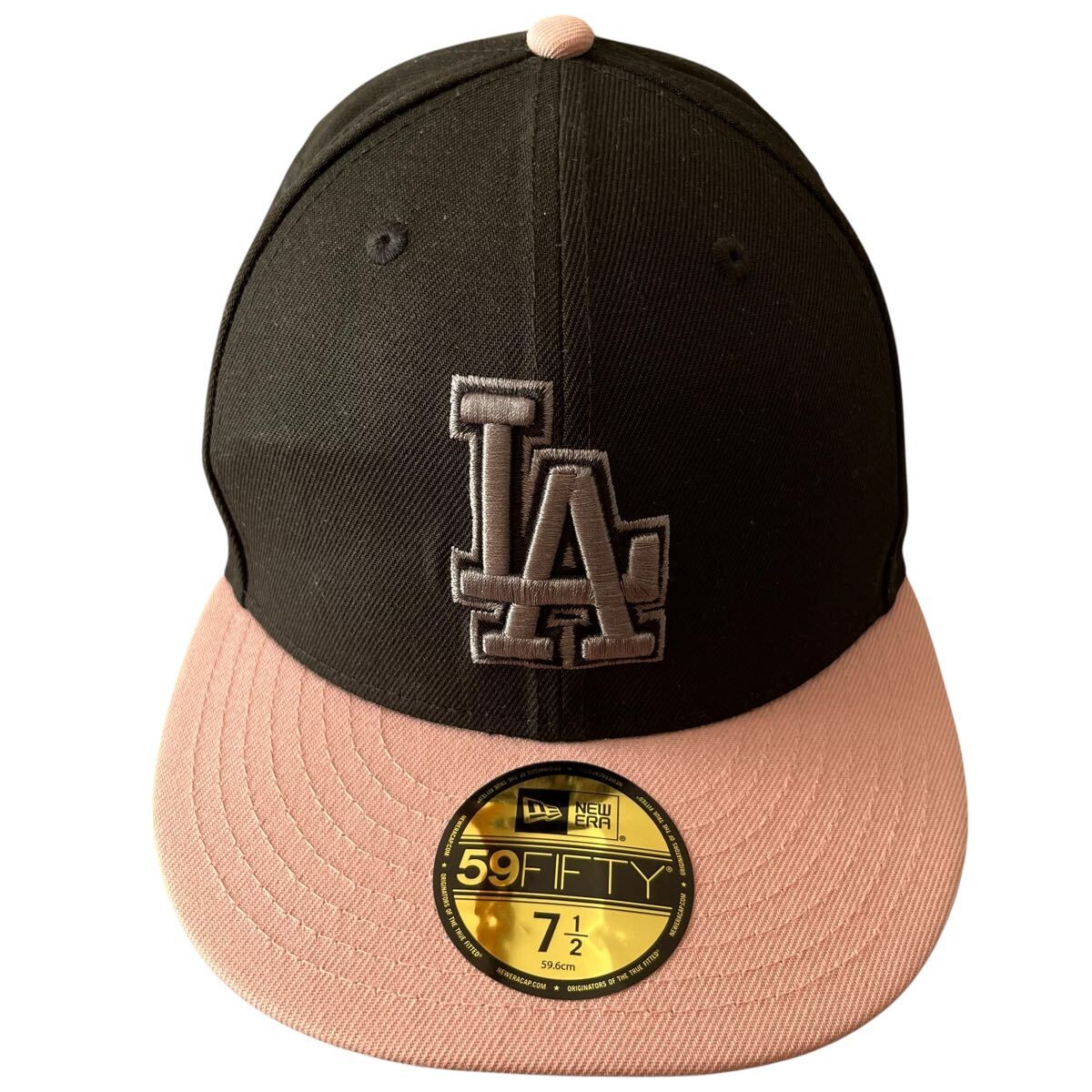 - 美品 ニューエラ キャップ ドジャース 59FIFTY 帽子 59.6cm ピンク ブラック