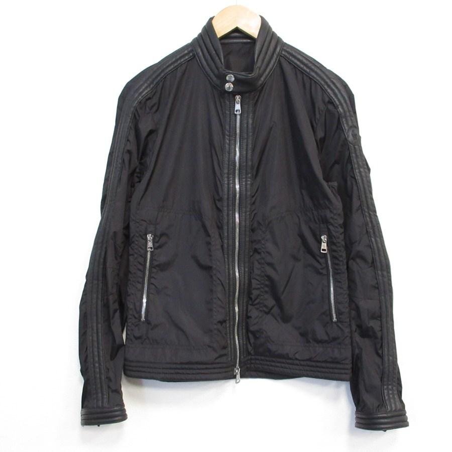 - 送料無料 美品 モンクレール MONCLER ナイロンライダースジャケット ブルゾン DAQUIN ラムレザー切替 2 黒 メンズ