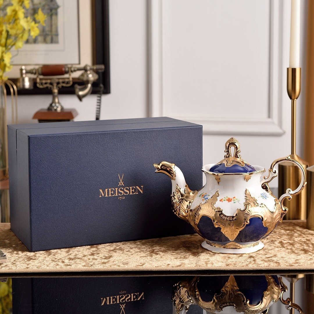 - MEISSEN B-FORM マイセン テイーポット 洋食器 アフタヌーンティー ネイビー 箱付き 刻印付き ms0378