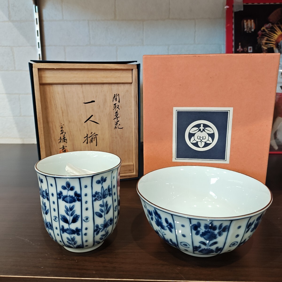 - 90810 日本古風堂 橘吉 たち吉 間取草花 1人揃 お茶呑茶碗