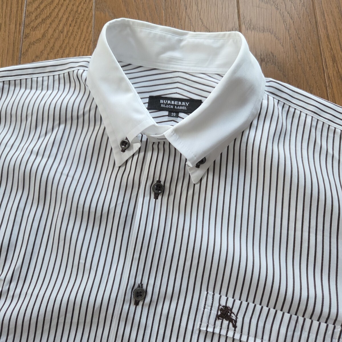 - 【極美品】 BURBERRY BLACKLABEL バーバリー ブラックレーベル ワイシャツ ブラウン ホワイト ストライプ Mサイズ 38