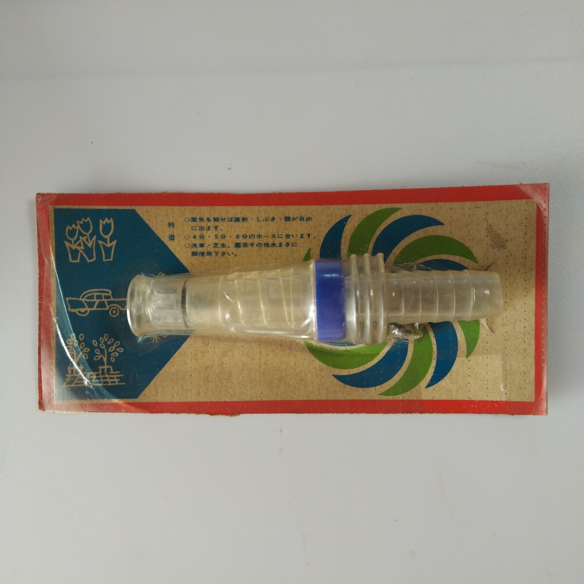 - 昭和レア プラスチック製の散水ノズル 12mm,15mmのホースに取り付けます。取り付け金具あります。昭和40〜50年代の品です。