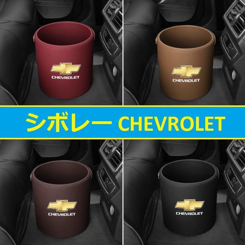 > シボレー 車用ゴミ箱 ダストボックス 車載 PUレザー ゴミ入れ 丸型 車用収納ケース 小物入れ ブラックモカ ワインレッド コニャックカラー