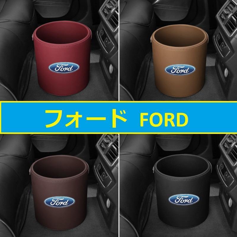 > フォード 車用ゴミ箱 ダストボックス 車載 PUレザー ゴミ入れ 丸型 車用収納ケース 小物入れ ブラックモカ ワインレッド コニャックカラー