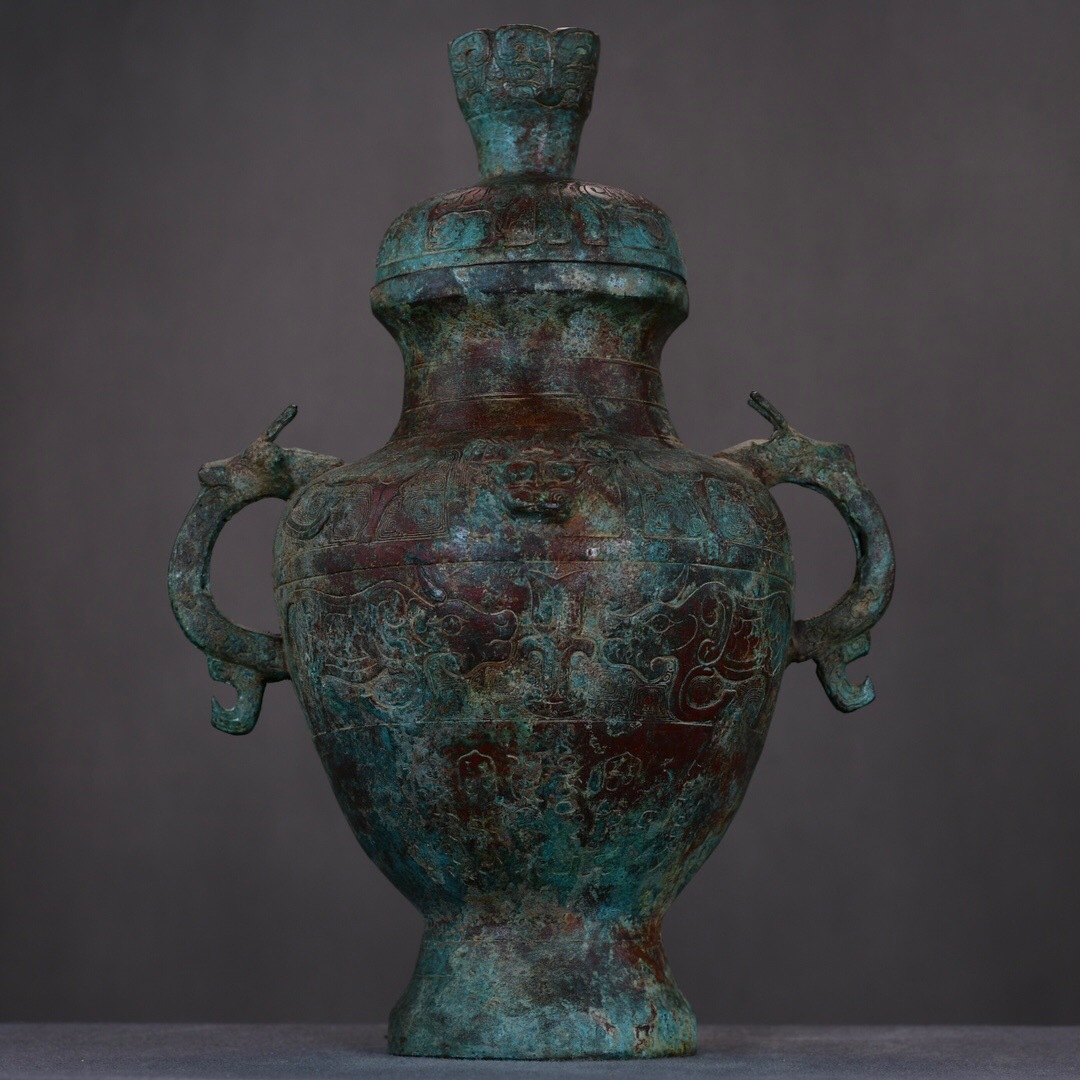 - 『館蔵珍品 西周 青銅製 龍耳壺 青銅器 置物 賞物』稀少珍蔵品 古賞物 貴重物品 収蔵品 中国古美術 時代物 古董品