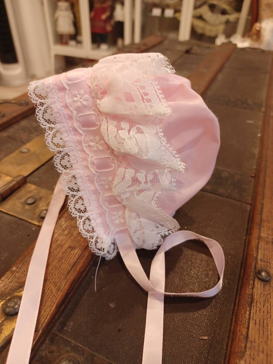 - ≪特価≫ お人形 ビスクドール リプロダクションドール ドレス アンティーク ボンネット ピンク リボン