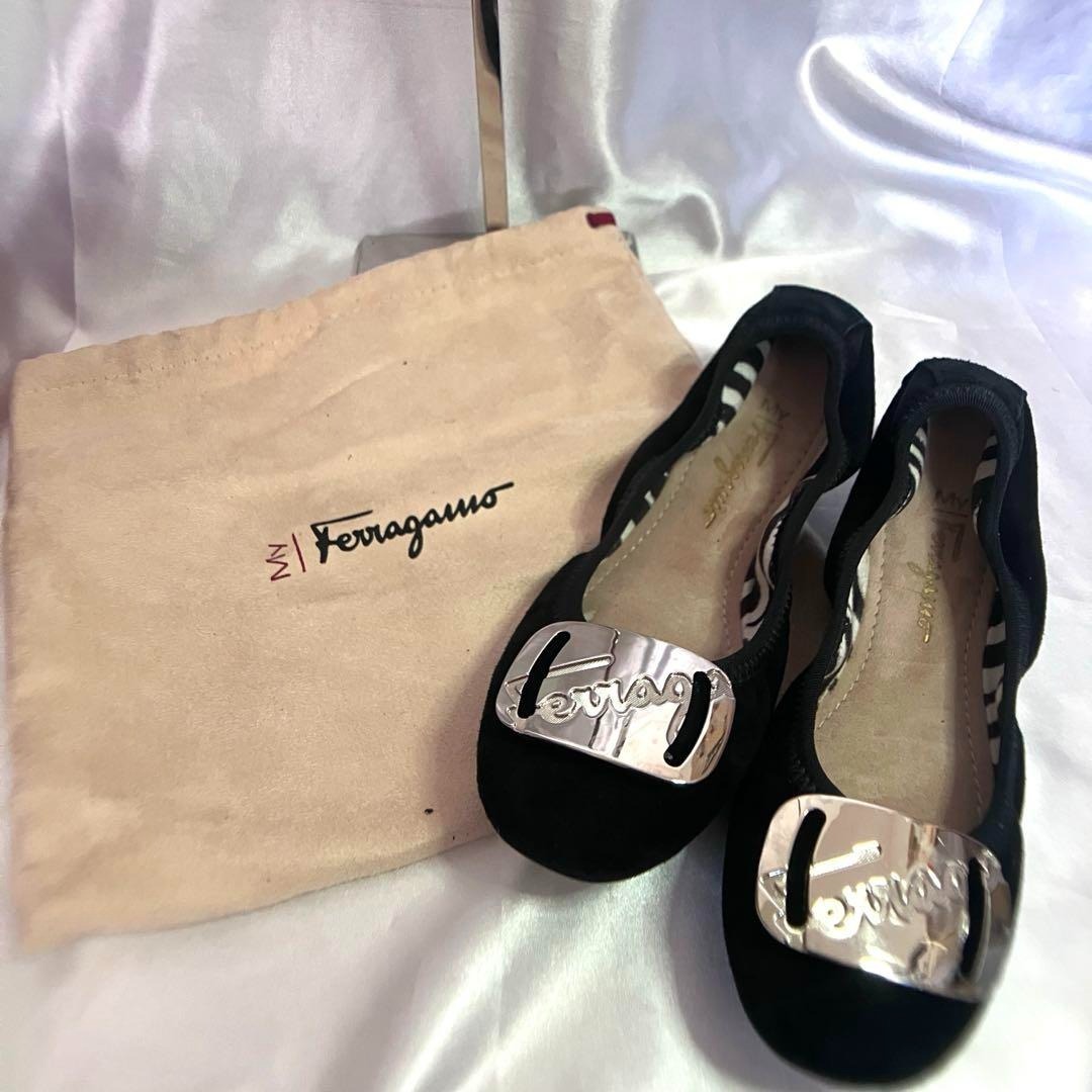- サルヴァトーレフェラガモ FERRAGAMO バレエシューズ フラットシューズ 箱付き ロゴバックル バレリーナシューズ 希少デザイン スエード