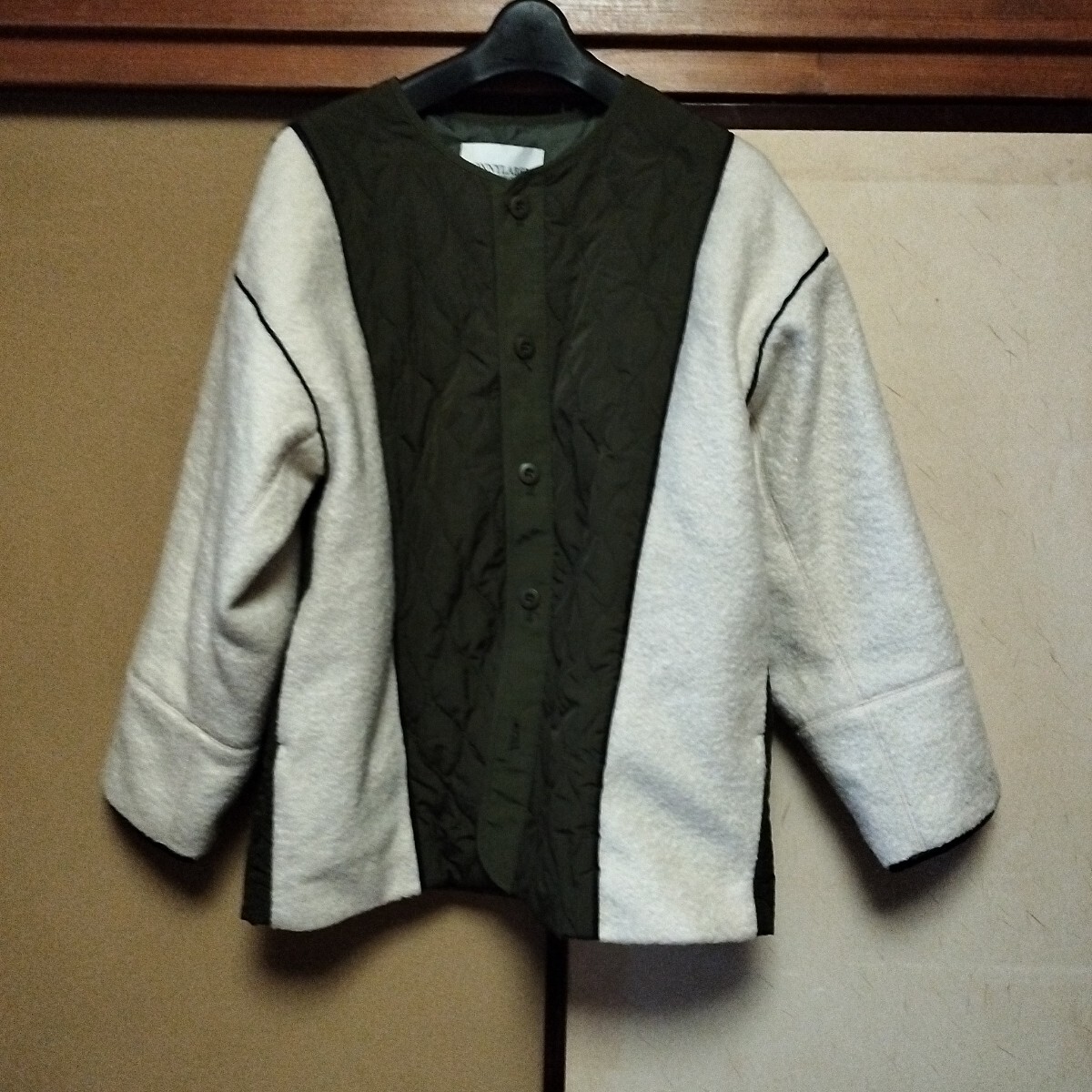 - アーバンリサーチサニーレーベルノーカラー中綿キルティング×ボアジャケットオフホワイト×カーキ/フリーサイズ