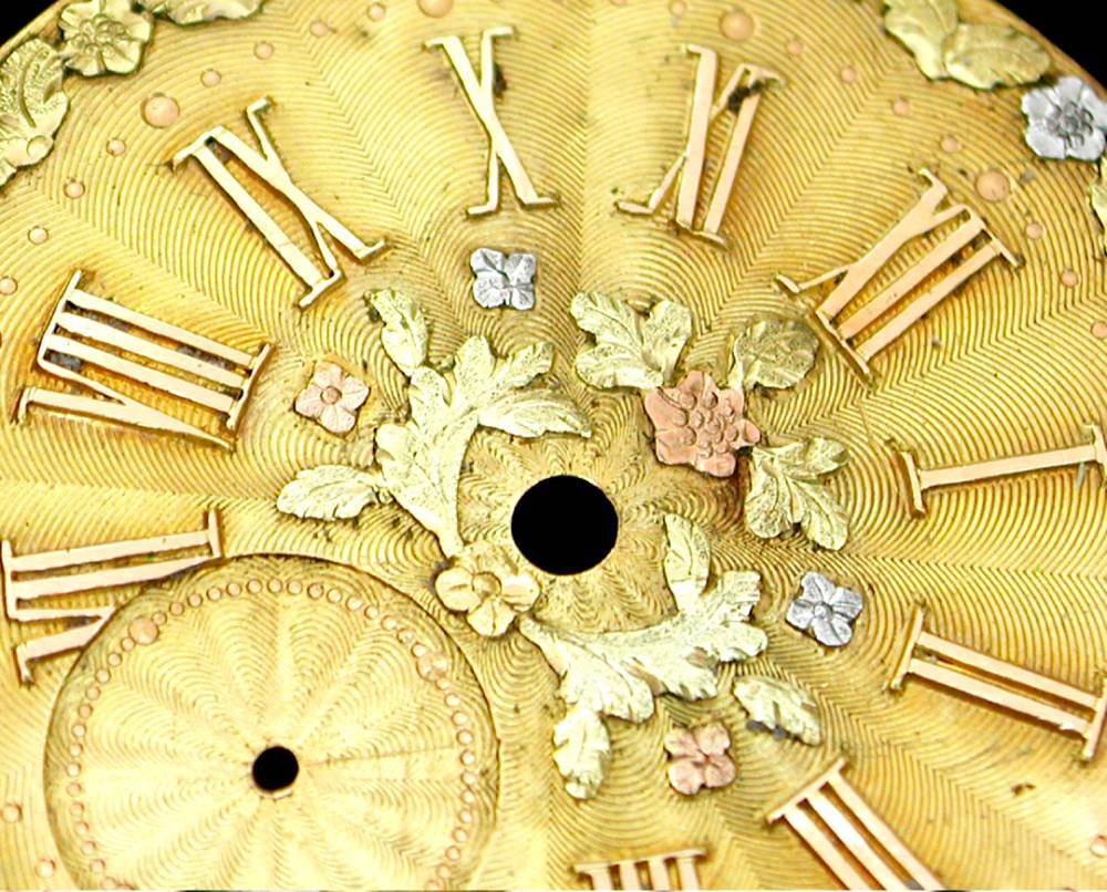 - ◎古◎超レア★極上★金無垢文字盤★手彫りマルチカラー装飾★14K以上?★被せタイプ★12サイズ★懐中時計用★36.4mm