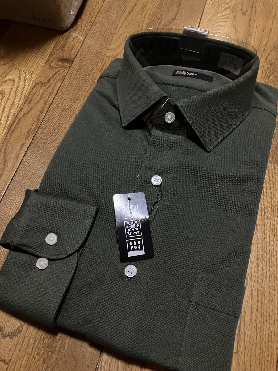 - BUSINES EXPERT★ノンアイロン 濃い緑無地ワイシャツ L(41-82) セミワイド ストレッチで着やすいです