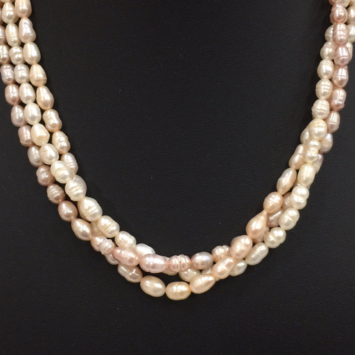 - パール 真珠 3連 ネックレス ホワイト系 ピンク系 アクセサリー レディース 総重量約51.3g ファッション小物