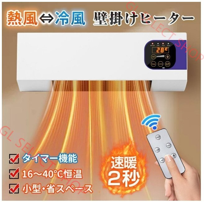 - 壁掛けヒーター ファンヒーター 壁掛け 風扇 冷温2段階調節可能 リモコン セラミックヒーター 省エネ コンパクト 冷暖房 (A60)